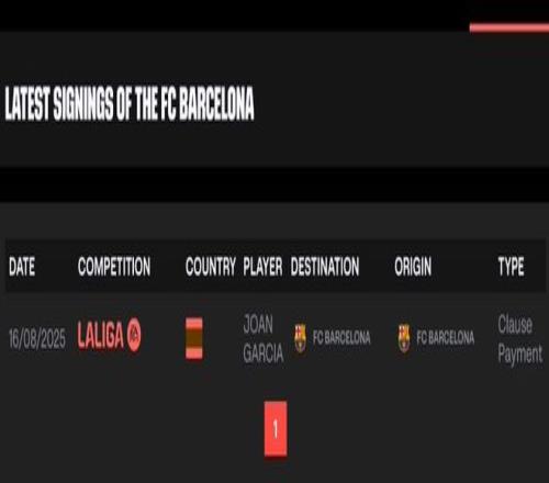 雷速体育8月16报道 北京时间今日,据西甲官网显示,巴萨已经完成了对门将霍安·加西亚的注册,球员可以出战首轮西甲联赛。