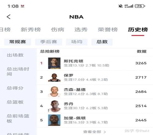 1.NBA常规赛历史抢断王
