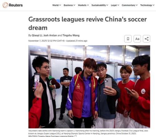 路透社7日的一篇报道指出,在中国农村,由农民、学生和工厂工人自发组织的业余足球联赛意外吸引了数百万观众,并激励大城市效仿。这燃起了中国通过“草根培育”培养人才、最终跻身足球强国的希望。