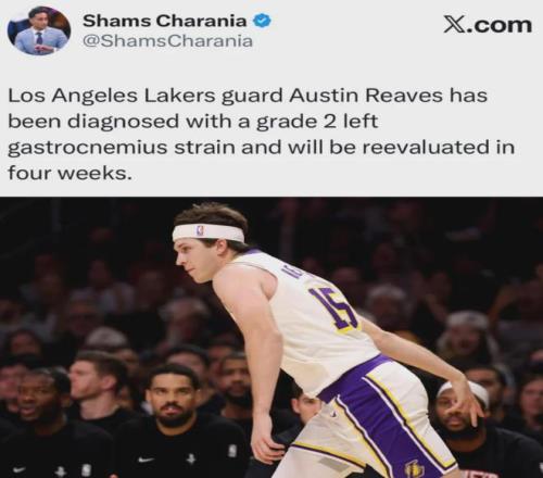 今天的最新消息,由NBA名记Shams报道,他说里夫斯遭遇了左腿的腓肠肌二级拉伤将至少缺席4周的时间。